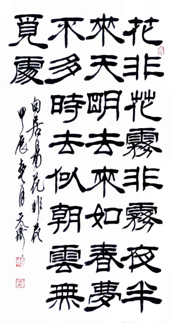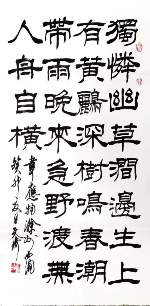 在这几十年的书法实践中,我谨遵古法,悉心学习古人经典,精临深悟名碑名帖,不敢一日懈怠。就我所学的隶、草、行、楷四种书体来说,在每一体上都投入了很大精力,穷经皓首,勤学不辍。
