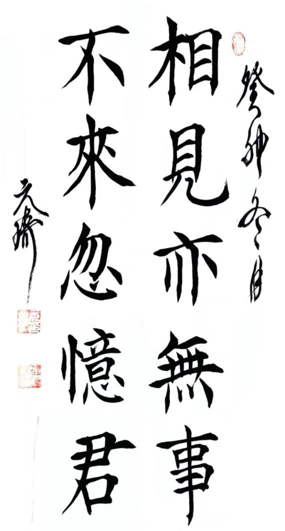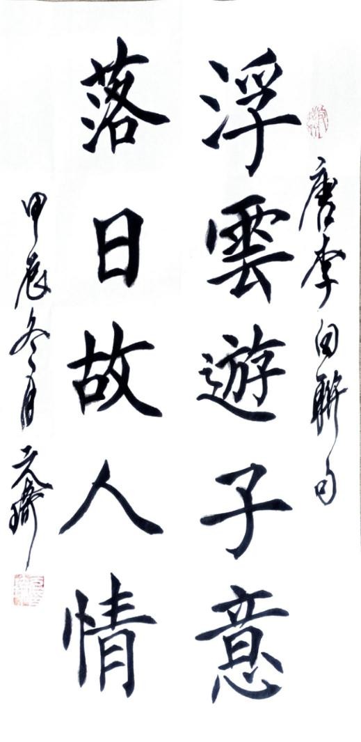 再说说楷书。我学习颜楷笔意,以欧楷立形,以柳壮其骨融会贯通,举一反三,这就形成我现在瘦硬匀衡,爽利挺秀,内紧外松,风骨刚劲的书风。