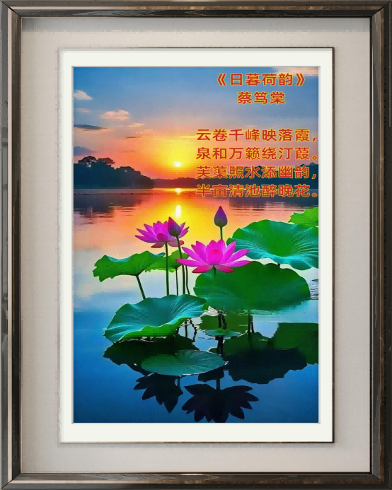 芙蕖照水添幽韵,半亩清池醉晚花。