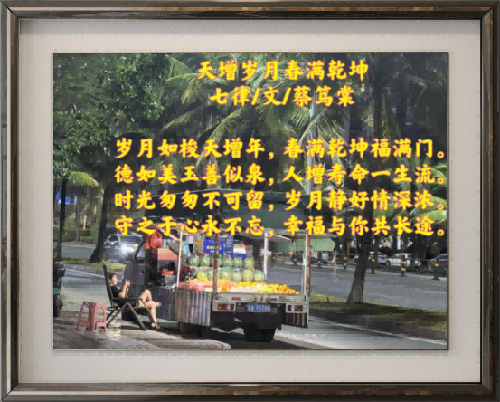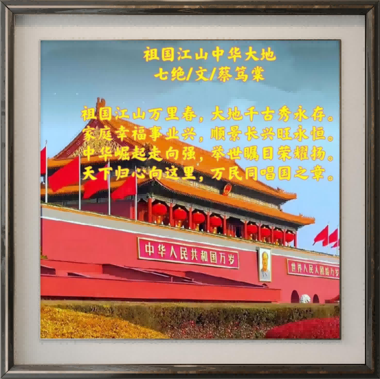 从《蔡笃棠诗词精选集》的 5868 首作品到《红色记忆艺术传 承》的主题创作,蔡笃棠构建了一个庞大而精微的诗意宇宙。 在这个宇宙中,科学思维与艺术灵感、个人体验与集体记忆、 传统文化与现代精神达成了奇妙的和解。他的诗歌艺术告诉 我们:真正的创新从来不是对传统的否定,而是对传统的深 度理解与活化;真正的文化自信也非固步自封,而是在开放 包容中确立自身的主体性。作为"人民艺术家"、"百年艺术巨 匠",蔡笃棠的诗歌创作已经超越了单纯的文学范畴,成为当 代中国文化建设的一个诗意注脚。在算法推荐、流量至上的 数字时代,这种坚守诗性、深耕文化的创作姿态,愈发显得 珍贵而重要。