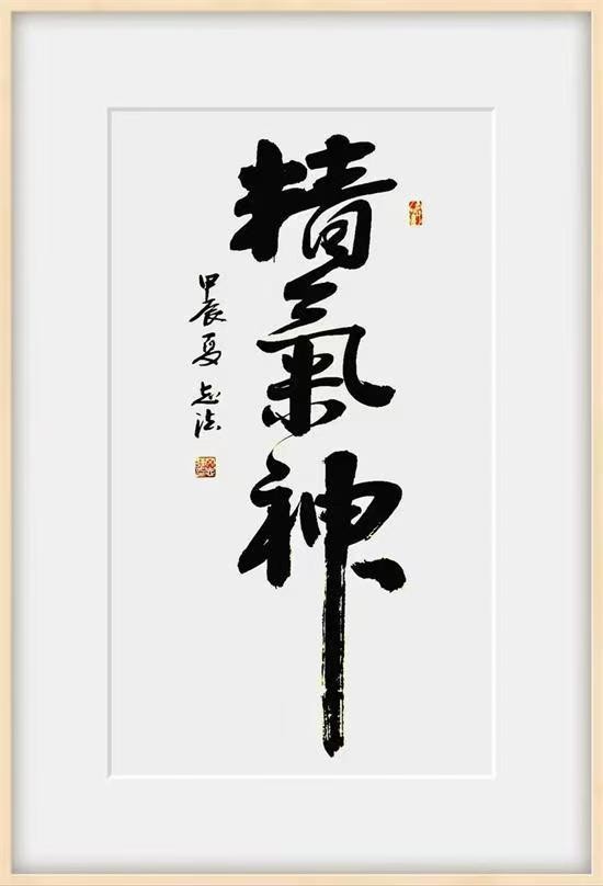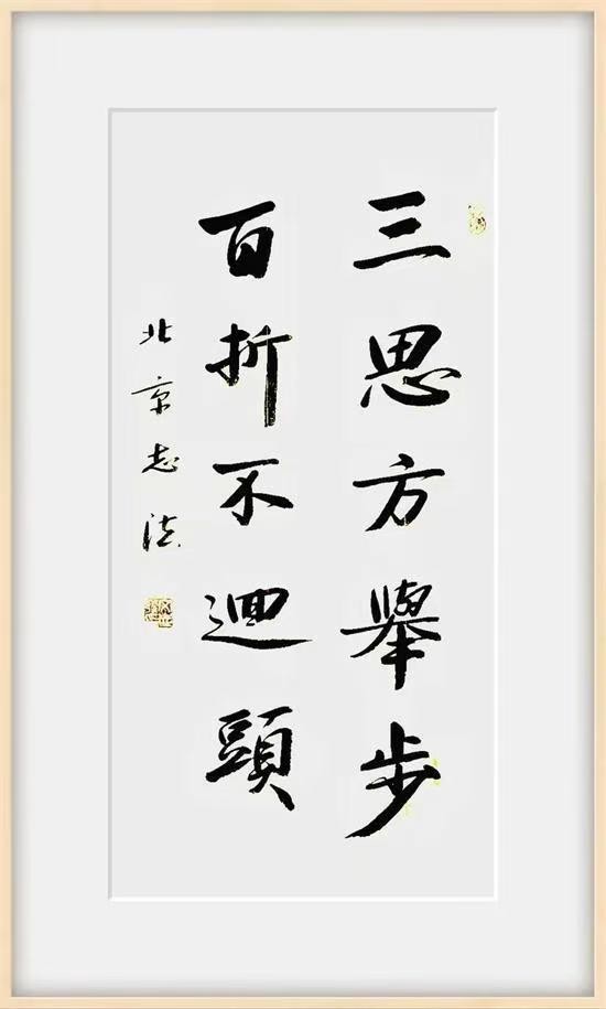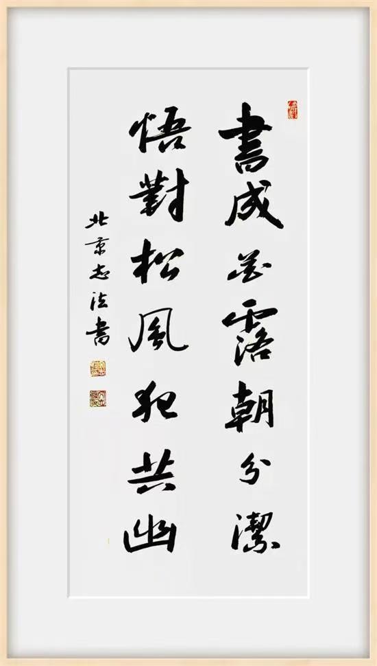 在传承的基础上自成一家。他的艺术创作没有丧失自我,没有跟风,没有人云亦云。他的书法严整遒劲,沉实洒脱,俊美中含刚毅,其作品境界悠远意味深长,一幅幅具有“灵魂”和“灵性”的作品,为品鉴者和鉴藏者平添了无数艺术趣味。
