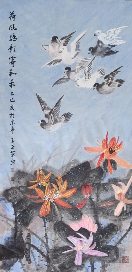 王世军笔下佳作,常于国际、国内重要书画展惊艳亮相,在中、日、韩、美等多国的文化交流场合绽放光彩,并屡获殊荣。百余幅力作被人民画报社、国家博物馆、中国人民革命军事博物馆等永久收藏,泰国诗琳通公主、联合国前秘书长潘基文等国际政要也将其作品纳入珍藏。能获官方机构与国际名流的双重青睐,足见其作品兼具艺术价值与跨文化的沟通魅力,无愧“国礼画作”水准。