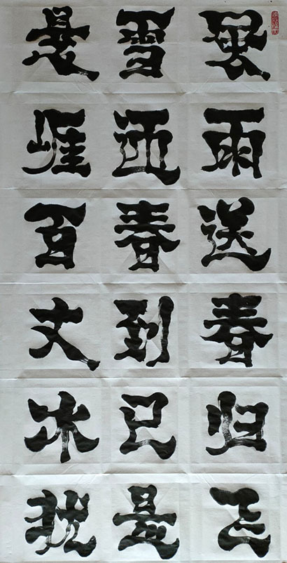 风格独树一帜:以“婀娜多姿·飘逸俊美”著称,涵盖楷、隶、篆、行草、榜书五体,强调“天人合一·雅俗共赏”的自然美学。