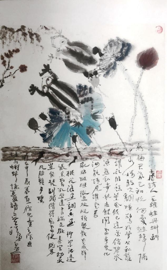 从美术史维度审视,程涌的"奇拙朴"并非无源之水。徐渭的泼墨大写意、八大山人的简约孤傲、齐白石的农家趣味,都在其笔墨中若隐若现。但程涌的独特之处在于,他将这些传统资源与当代生活体验熔于一炉——《都市野趣》系列中,高楼轮廓以碑派笔法写出,交通标志融入题跋位置,传统笔墨获得了表现现代景观的新可能。这种创造性的转化,避免了当下许多书画家要么泥古不化、要么全盘西化的两极困境。