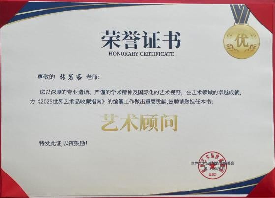 2022年荣获“中国最具有价值品 牌艺术家百强榜”世界艺术联合会全球品牌实验室,特聘为博鳌亚洲艺术人才研究会副理事长。 中央日视台中学生频道时代人物艺术家顾问。