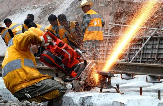 《最美高铁建设者——锯轨作业》刘敬渭 摄