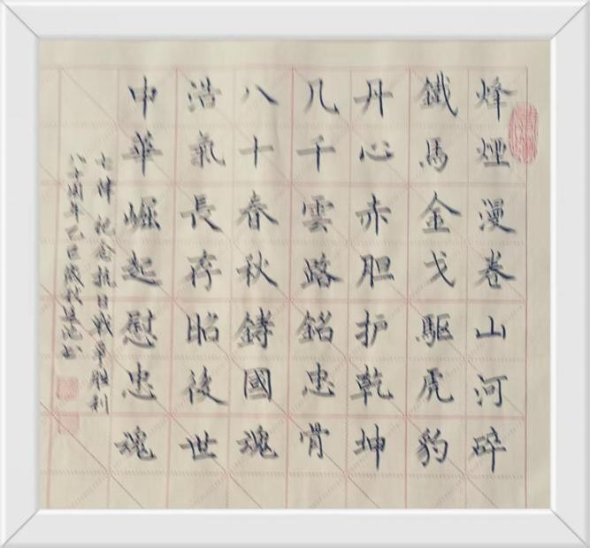 自幼爱书法2015-2016在伊川老年大学学习、2017-2019在郑州参加书法考级,经过三年努力拿到10级证书并加入郑州市书协会、2020-2023年多次在网上书展.每次获行特.1、2、3优秀奖和证书。