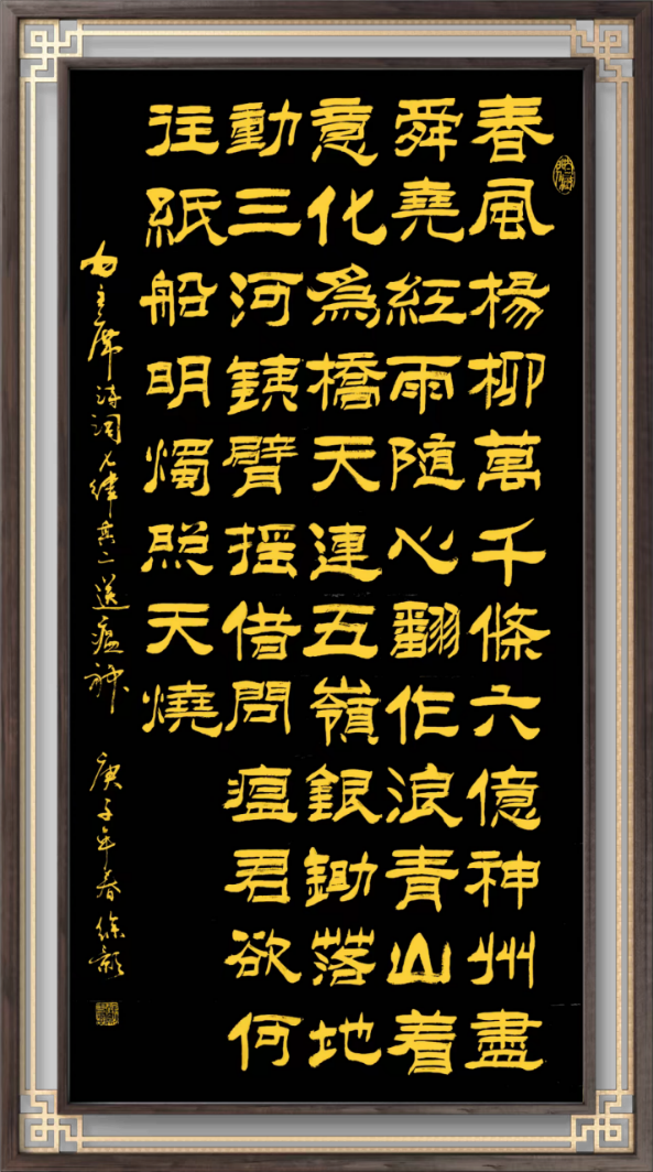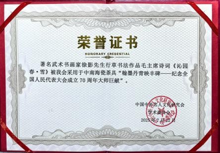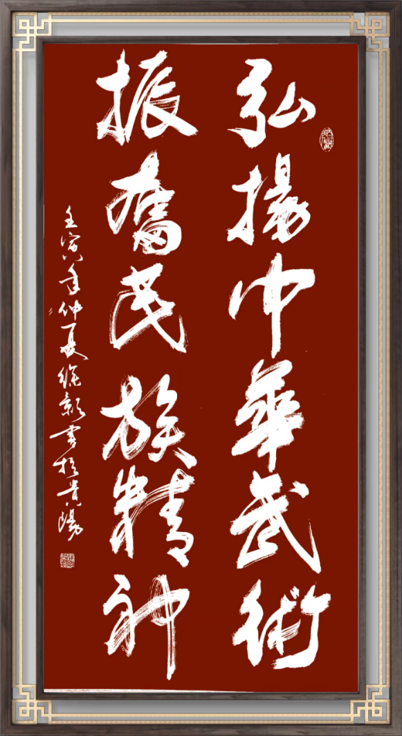 阳光初透城垣,河畔稍有微风,著名书画家、武术家徐影老先生意念太极推手,铺陈悬腕运笔,展臂如飞鹤,拳风扑面生!案头铺宣纸,狼毫蘸清墨,起笔落笔有依拳势出收的力道,书法五体兼优,风骨卓然,浩然波磔,正气立笔!这种文武交替的书画创作,坚持六十余载,已经将武道筋骨与书家气脉熔铸成独特的文化气质。当人们惊叹他苗刀出鞘的寒光竟能与山水画卷的氤氲同存时,必然大悟中国传统文化中大道不虚,存乎于修行的真谛。武术者常困于形,文人则易溺于意,徐影书画在于文武兼修,如同打通文化体躯的所有经脉。他曾远赴海外传艺,他以拳架比拟书法结构,用笔意注解招式神韵,让异国弟子在宣纸的飞白与拳法的虚实间窥见东方文明的大智慧。跨越语言的艺术对话,让他在国际文化交流站位精妙,成果累累。行草墨迹与武术演示形成互文;金书楷,锦字隶,庄重姿态与太极圆融交织成文明和弦。又见其笔下的榜书大字既有千钧笔力又含武道缠丝,武术教学从不止于套路传授,而是将书法美学注入招式,令观者恍见怀素草书中的骤雨旋风!若说武术修养是他从事书画事业的筋骨,书画则是流淌的文化血脉。金书锦字,山水长卷,青绿浅绛里的层峦叠嶂有斧劈皴的刚劲,云气蒸腾处则透出云山太虚的空灵,他的山水画带着武道观察世界的特有视角,是将武术劲道融入文人山水的创作的代表佳作:焦墨勾勒的绝壁犹如武者立身中正的脊梁,淡赭渲染的流云却似太极推手的绵长气韵,山水意境既非传统隐逸者的世外桃源,也非当代写生派的客观再现,而是武者丈量过、书家沉吟过的文化新现场,挂在厅堂,当然蓬荜生辉,尽见正大气象!他多次蝉联武术金牌,书画与武术的互融,成就了他全能型实力派的地位美誉,参与影视创作自然能够将书画的虚实相生转化为动作设计的美学玄机;在书画展上则又以太极起势的圆融阐释水墨渲染的层次,魅力无穷,引人入胜,于是其创办的武校后继有人,让书道武道的文化传承炼有了扎实的载体!执笔如握剑,运腕似化劲的体能,转化千里阵云的书道络脉,前后相续,代不绝人!书道武道交织而成的文化正道,映着漫过楼台的飞檐,虚空书写带动身形随山风演练,山水与武学经典合为一卷,以特有的方式摆渡文明进程,惠世护生!有的作品捐赠给慈善机构义卖,有的成为收藏品里的和璧隋珠,有的成为文化传统的精神基谱。鉴于此,可知文化真谛不在会成为故纸一堆,而是会化作这位精武者收放自如的拳掌,变成这位书道贤家吞吐山河的笔墨精神!