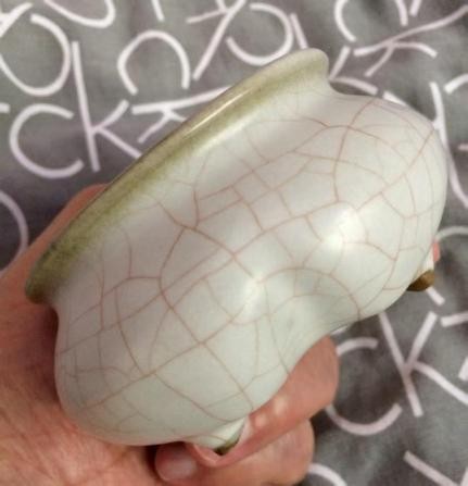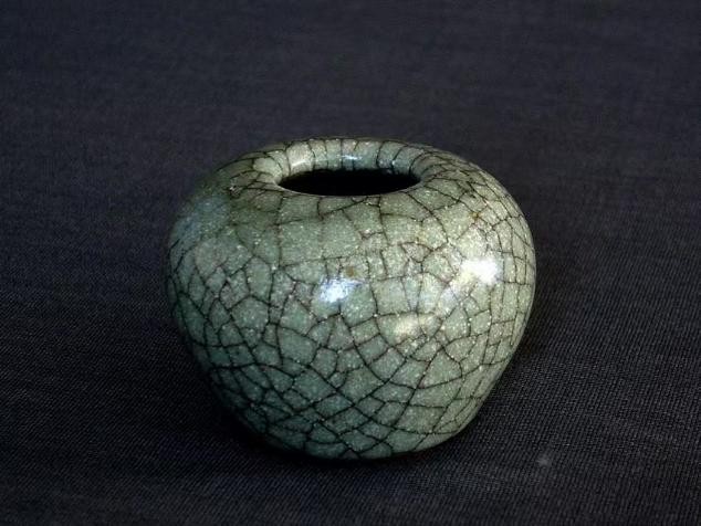 元代哥窑虾青釉小水丞 高:4.9厘米