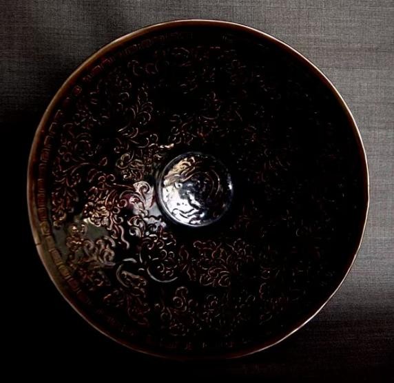 宋代黑定镶银口印花大碗 口:25.0厘米