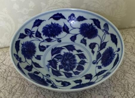 大明宣德款青花花卉大碗 口:20.5厘米