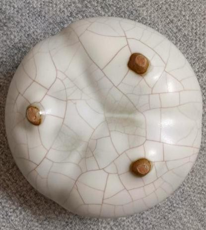 王喜庚 1947年生。爱好收藏要追溯到上世纪80年代初,我在北京某杂志社任编辑。居住地的附近,天坛北门两侧多有临建棚屋,大多卖些旧物。其间也有文革罚没查抄退还杂物。闲暇时我常去闲逛。这件北宋汝窑三足旋纹炉就是那时期所购。当时也不知道是何物,一眼就被它古朴的形状和生动的颜色深深地抓住了,于是我十分果断地买下了。到后来喜欢上古陶瓷,才知道他就是大名鼎鼎的北宋汝窑。工作期间有时到全国各地出差,古玩店是必须去的。古陶瓷知识随之越积累越厚实。久而久之,便酷爱了。