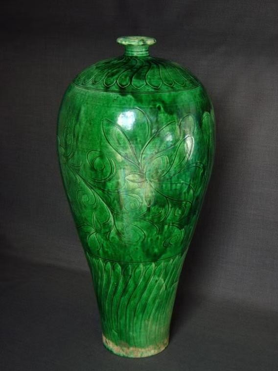 宋代绿定刻花大梅瓶 高:49.5厘米 足:10.8厘米