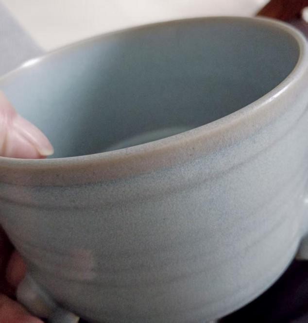 北宋汝窑三足旋纹炉 高:9.2厘米 口:12.5厘米