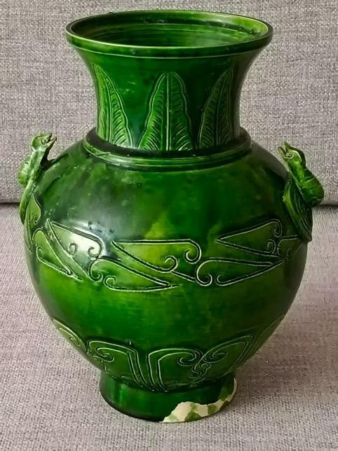 宋代绿定刻花双耳樽 高22.0厘米