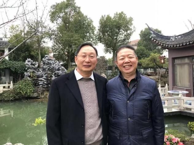 陈自明与中国健康管理协会上海代表团主任、上海市健康科技协会执行秘书长李晓松(左)参加学习