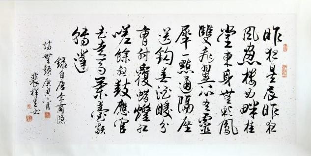 2018 年 9 月,参加了一带一路丝绸之旅中国文化艺术商贸代表团访问吉尔吉斯国,作为国礼书画家,作品《将近酒》(李白 ·隶)被吉尔吉斯国总理府收藏。