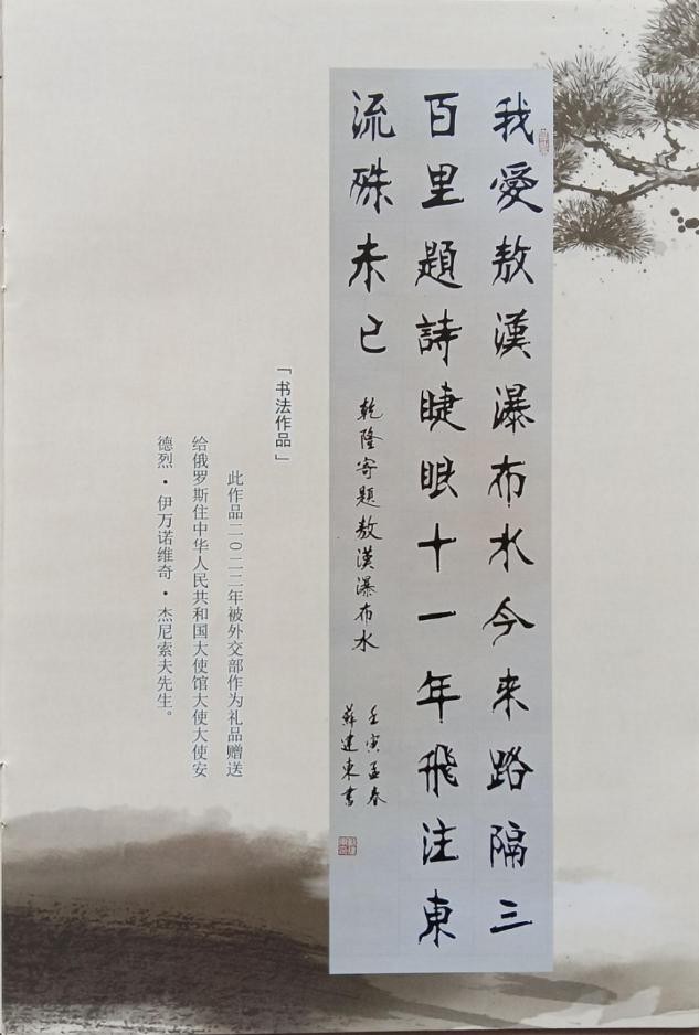 2022年,苏建东书法作品被外交部作为礼品赠送给俄罗斯驻中国大使馆大使安德烈·伊万诺维奇·杰尼索夫先生。