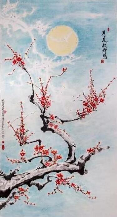 红梅映明月 牵我游子心 景是家乡美 月是故乡明