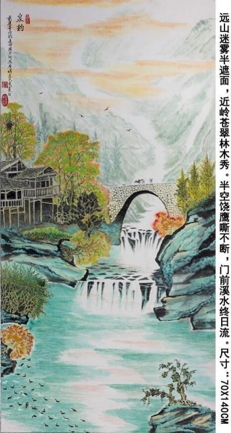 《故乡的河》70X138Cm 屋前河水千古流