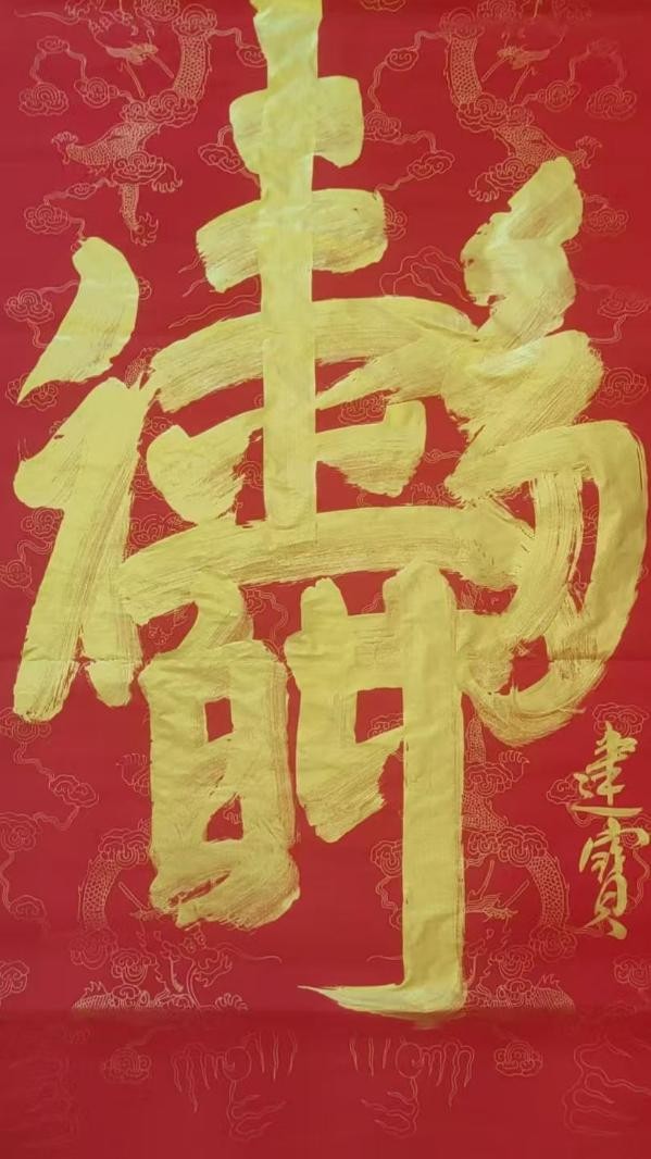 滕建宝自幼热爱书法,拜入榜书大师崔振海先生门下,得其真传,笔法日益精湛。后又受张中海书法大师指点,张大师曾任毛泽东警卫员,其书法蕴含深厚历史底蕴与伟人风采,滕建宝从中受益匪浅。