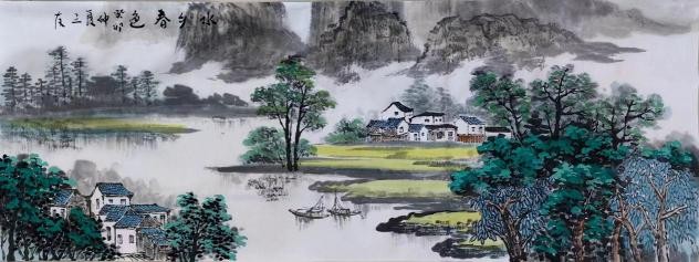 赵玉林是一位备受赞誉的画家,他的绘画技巧专精于山水画。 他的画作以巍峨的太行山和阴山崇山峻岭为主题,通过采用多层 次水墨铺陈的手法,同时运用浅绛青绿等细腻的色彩渲染技巧,