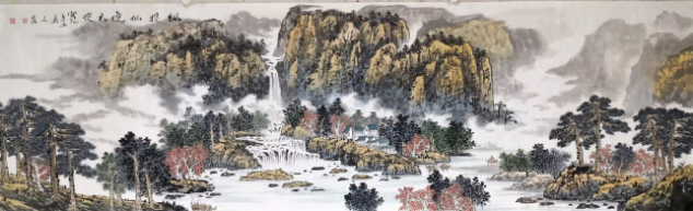 在他的画中,北方地区山势的绝险、树木的森茂以及水流激荡的景象都被描绘得淋漓尽致。观 者仿佛能够身临其境般感受到大自然的壮丽和神秘。这种美感的呈现使得赵玉林的画作成为了中国山水画中的佳作。