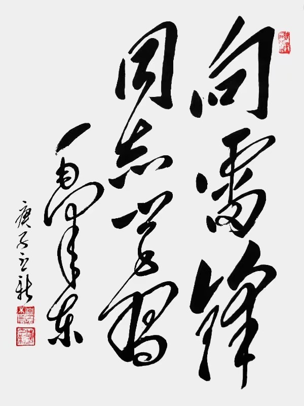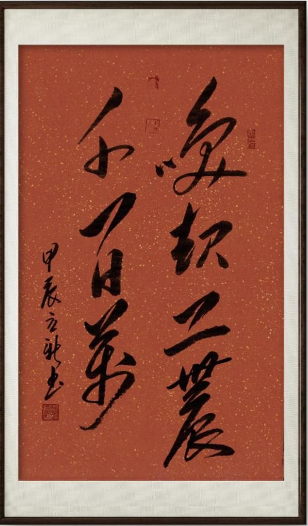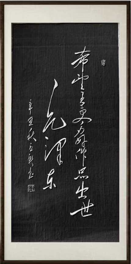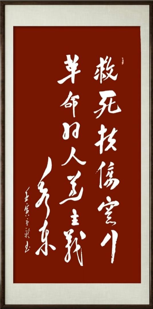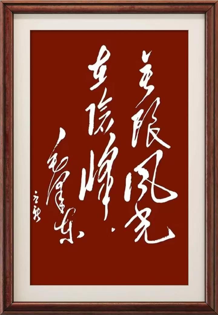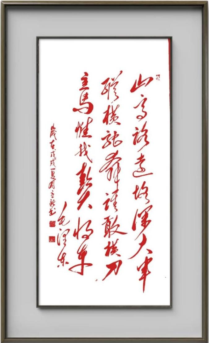 在深入研究毛体书法的过程中,潘立新先生不是模仿毛体草书的笔迹形态,而是要在书法精神层面上达到共鸣。毛体书法以独特的魅力和深厚的文化底蕴,在近现代中国书法史上占有重要地位,既展现了个人的情感表达,又蕴含着强烈的革命精神正能量。潘立新通过对毛体书法的深入探索,不仅继承了豪放大气的风格特点,还在此基础上融入了自己的理解和笔墨个性,形成了既有历史厚重感又充满时代活力的独特艺术风貌。