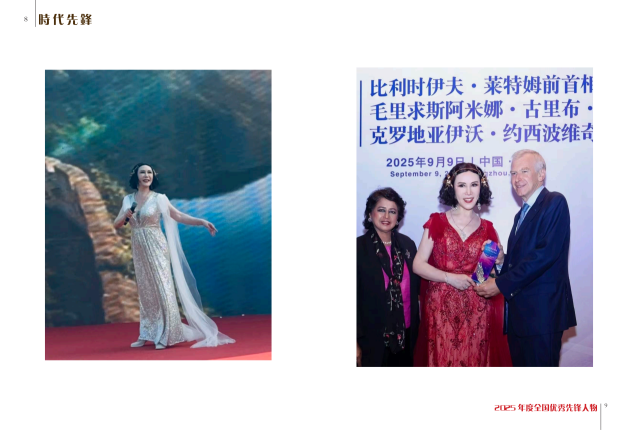 2025 年 9 月参加杭州的国际艺术盛典文化交流活动,受到多位总统的接见认可并颁发了:华语 乐坛《最受欢迎的歌唱家》奖.